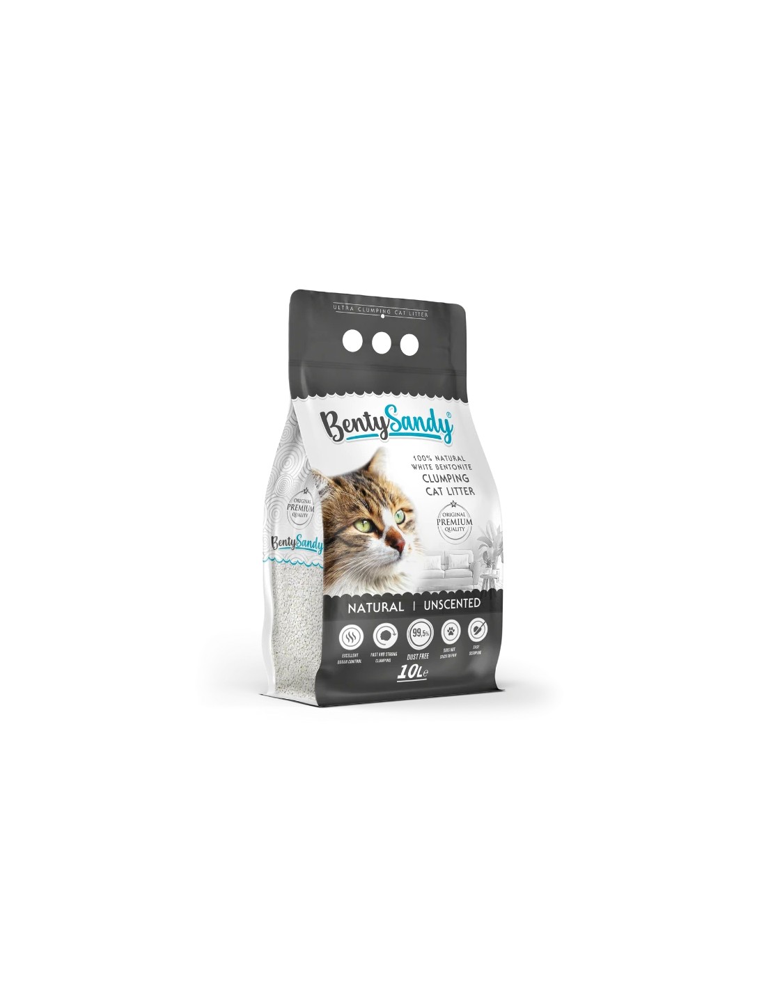 BentySandy Naturel Kokusuz Topaklanan İnce Taneli Kedi Kumu, kedinizin hijyenini sağlarken evinizde de temiz ve ferah bir ortam yaratır.