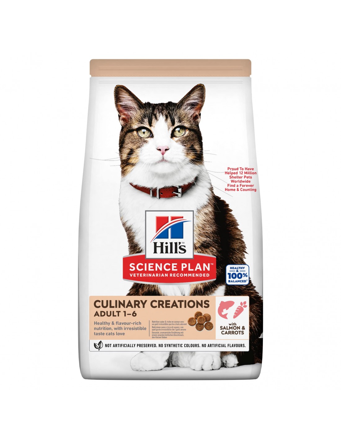 Hill’s Science Plan Culinary Creations Somonlu ve Havuçlu Yetişkin Kedi Maması, kedinizin damak zevkine hitap eden lezzetli ve besleyici bir öğündür. Gerçek somon proteini ve doğal havuç içeriğiyle kedinizin sağlıklı kas yapısını desteklerken, sindirimi kolay formülü sayesinde hassas mideler için uygundur. Omega-6 yağ asitleri ve E vitamini ile tüy ve deri sağlığını koruyarak kedinizin parlak ve sağlıklı bir görünüme kavuşmasına yardımcı olur.