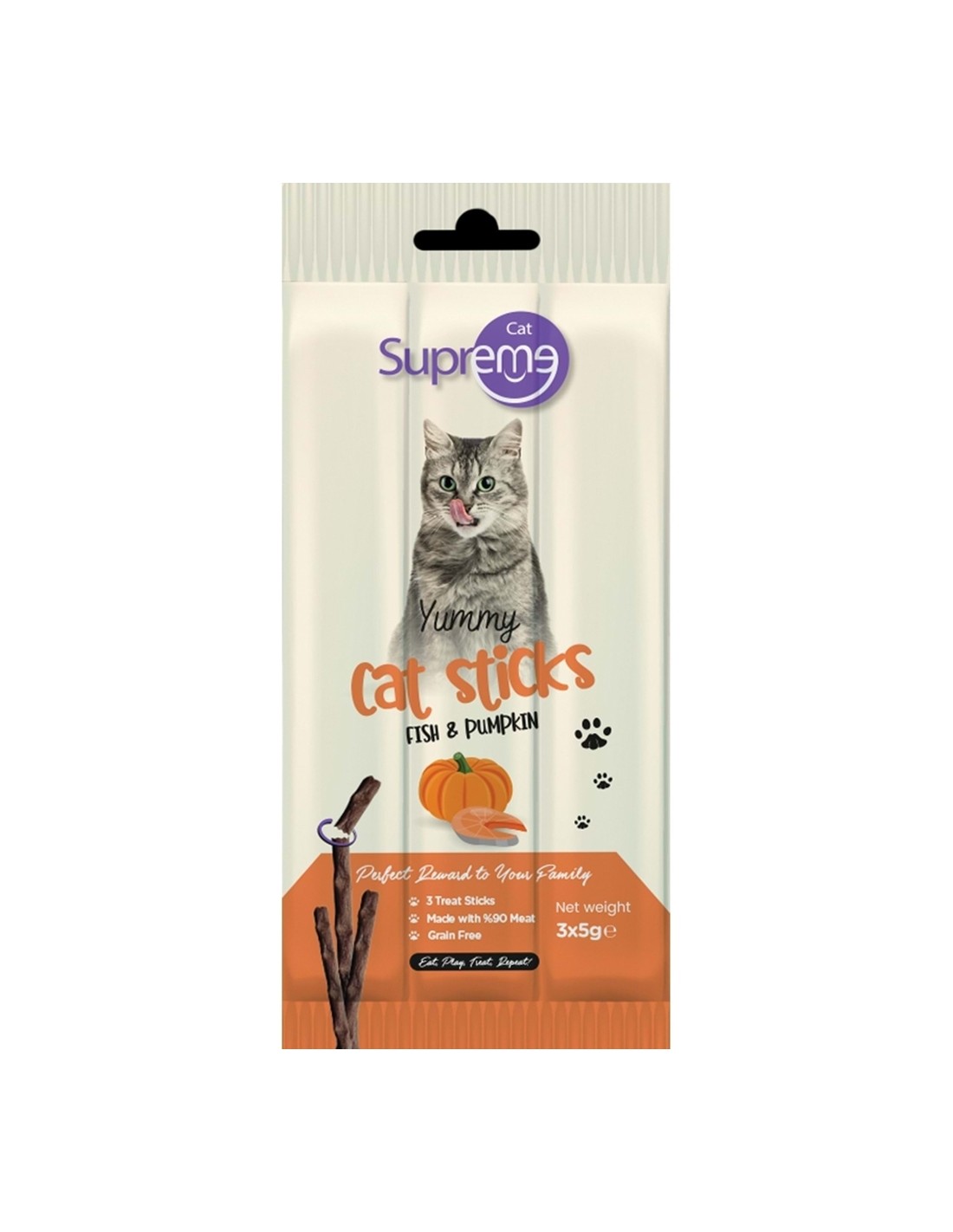 Supreme Cat Ton Balıklı ve Bal Kabaklı Stick Kedi Ödül Maması, kedinizin damak zevkine hitap eden özel bir lezzet sunar! Omega-3 açısından zengin ton balığı, sağlıklı deri ve parlak tüy gelişimini desteklerken, lif kaynağı bal kabağı sindirim sistemini düzenlemeye yardımcı olur. Yumuşak dokusu sayesinde kolayca çiğnenebilir ve pratik çubuk formuyla ödül maması olarak sunulabilir. Hem besleyici hem de lezzetli bu atıştırmalık, kedinizin sağlığını korurken ona keyifli anlar yaşatır.