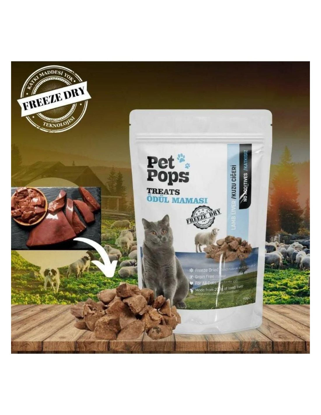 Pet Pops Freeze-Dried Kuzu Ciğeri Kedi Ödülü, kedinizin sağlığını ve mutluluğunu desteklemek için özenle hazırlanmış %100 doğal bir atıştırmalıktır. Gelişmiş Freeze Dry teknolojisiyle -40°C'de dondurularak kurutulan bu lezzetli ödül, besin değerlerini ve doğal lezzetini maksimum düzeyde korur.