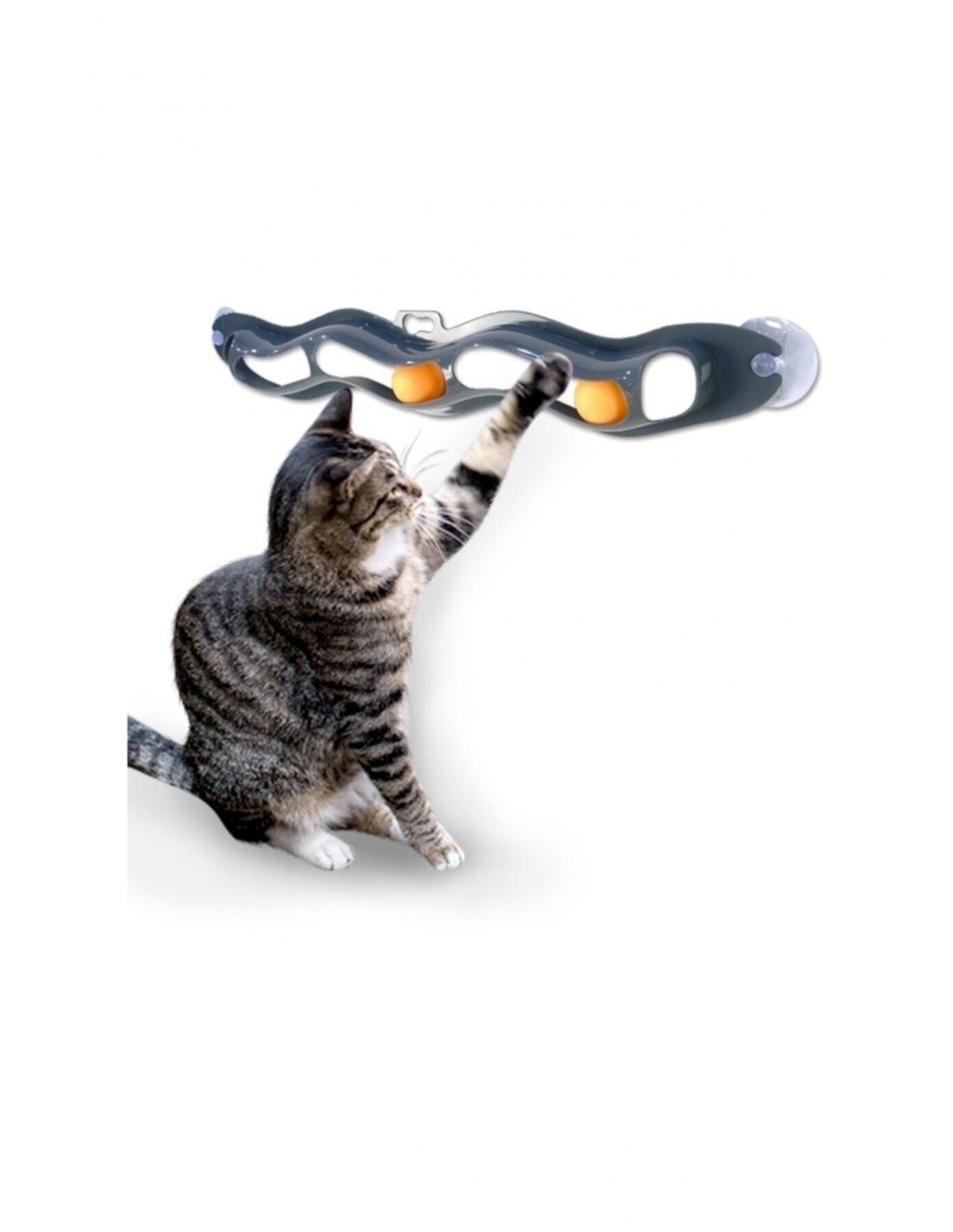 T rack n 'roll, kedilerin saatlerce ileri geri sallanıp durmasını sağlayan etkileşimli bir oyuncaktır. ; Pencereler veya sürgülü kapılar ve çoğu cihaz gibi herhangi bir cam yüzeye yapıştırılır. ; Ürün boyutu: 54cm ;