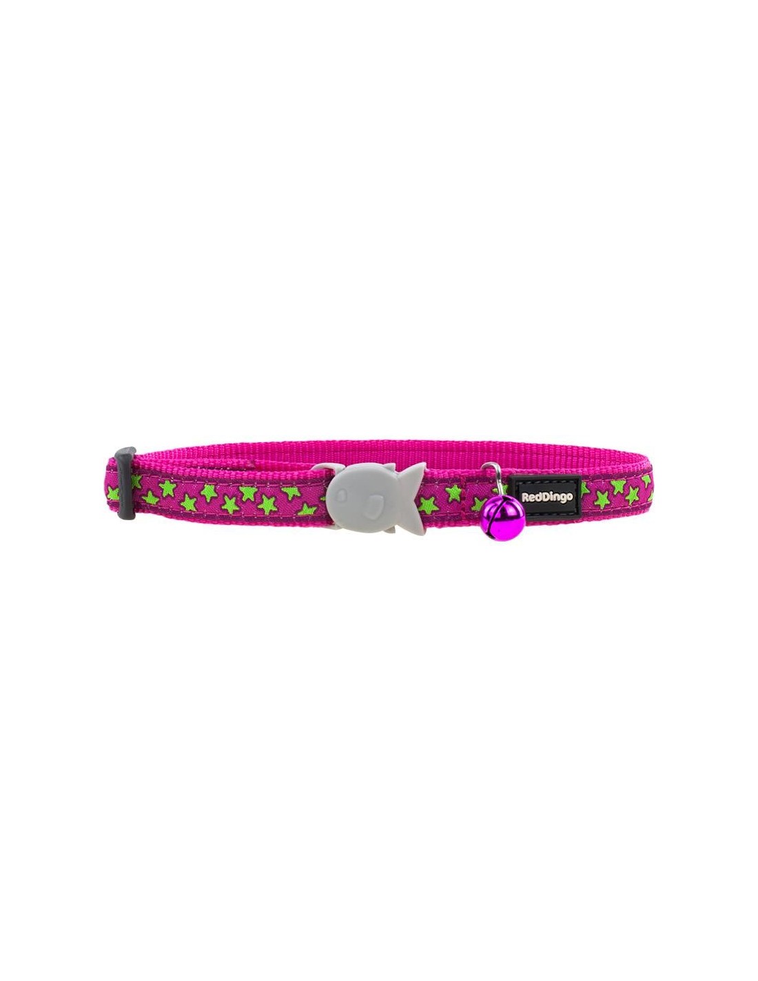Reddingo Pembe Üzerine Lime Yıldızlı Kedi Boyun Tasması, kedinizin konforu ve güvenliği için tasarlanmış şık bir aksesuardır. 12 mm genişliğindeki bu tasma, 20-32 cm boyun çevresine sahip kediler için idealdir ve ayarlanabilir yapısıyla mükemmel uyum sağlar.