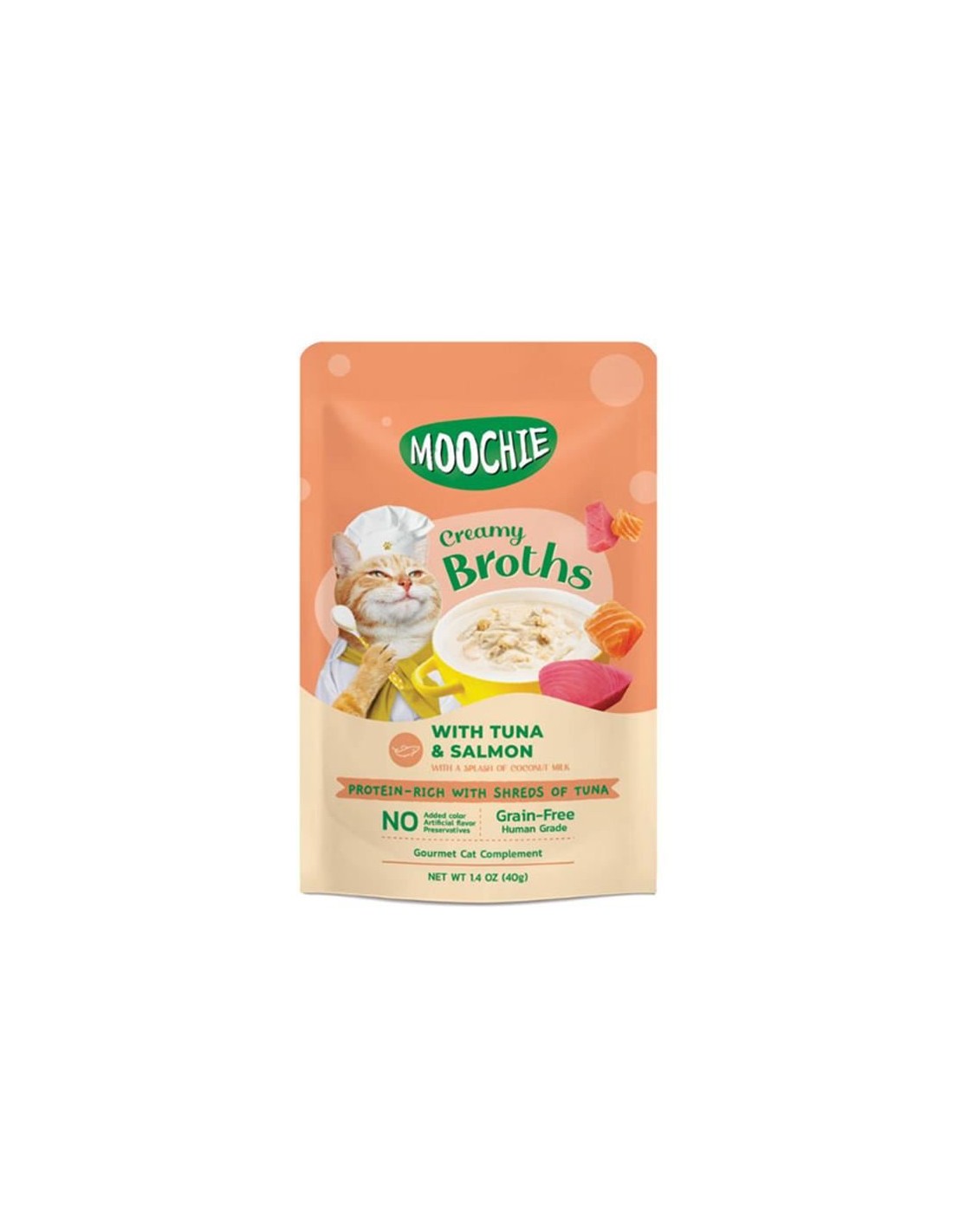 Moochie Parça Ton Balıklı & Somonlu Çorba ile kedinize denizden gelen sağlık dolu bir lezzet sunun.