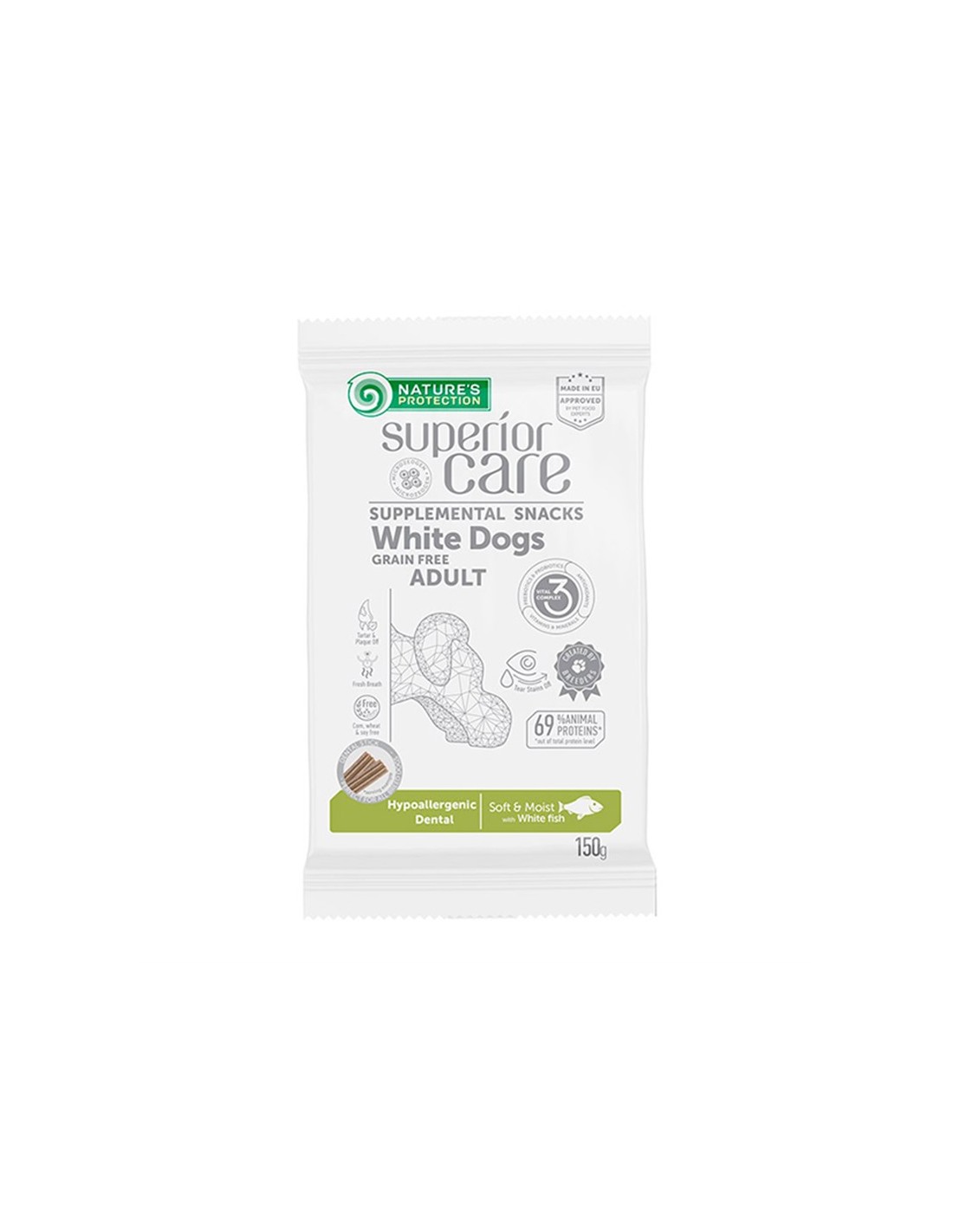 Nature’s Protection Hipoalerjenik Diş Sağlığı Atıştırmalığı Beyaz Balıklı Tahılsız Yetişkin Köpekler ve Tüm Irklar için