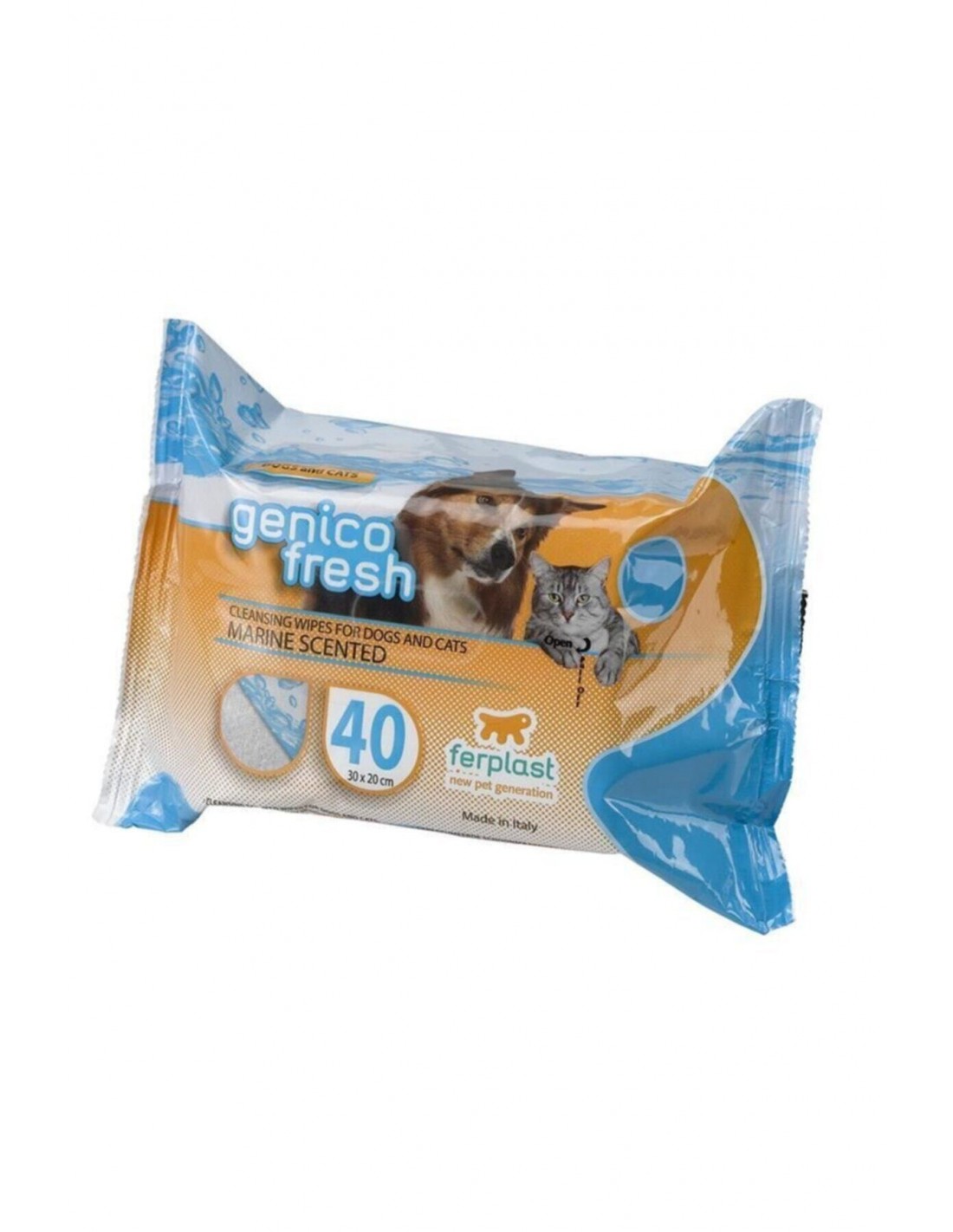 Ferplast ferahlık veren temizlik mendilleri ergonomiktir. Günlük yaşamın her evresinde kullanacağınız temizlik mendilleri kolay tek kullanımlık 40 adet mendilden oluşmaktadır. Talk Pudrası parfümü ile evinizin neşe kaynağı olan evcil hayvanınız seyahat, yürüyüşlerinizde hayatınızı kolaylaştıracaktır. Alkol içermeyen üstün formülü ile kedi ya da köpeğinizin tüyleri ve patilerinin temizliğini kolaylıkla yaparsınız. Üstün kir arındırma formülü ile artık kirlerin tüylerden uzaklaştırılması çok kolay. Ambalaj içeriğinde 40 adet 30x20 cm ebatlarında mendil bulunmaktadır.