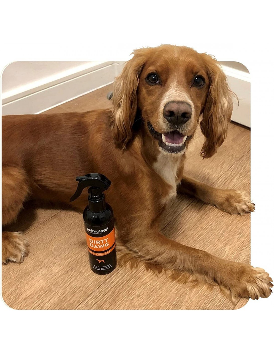 - Köpeğinizin tüylerine eşit bir şekilde Animology Dirty Dawg spreyini püskürtün.