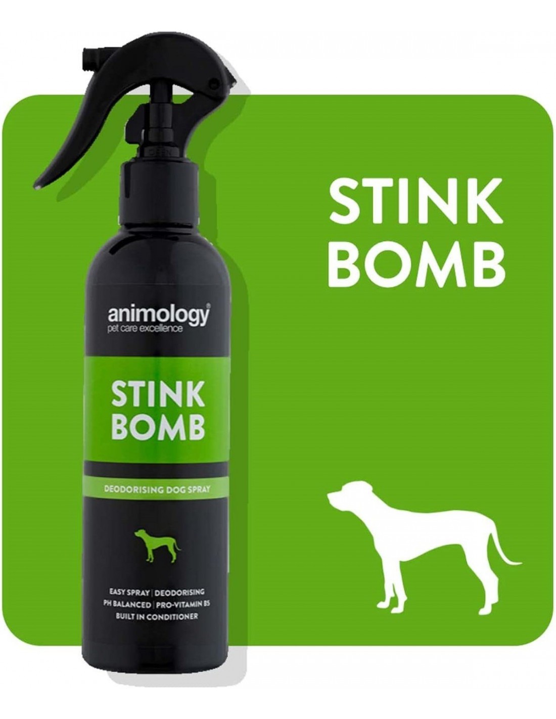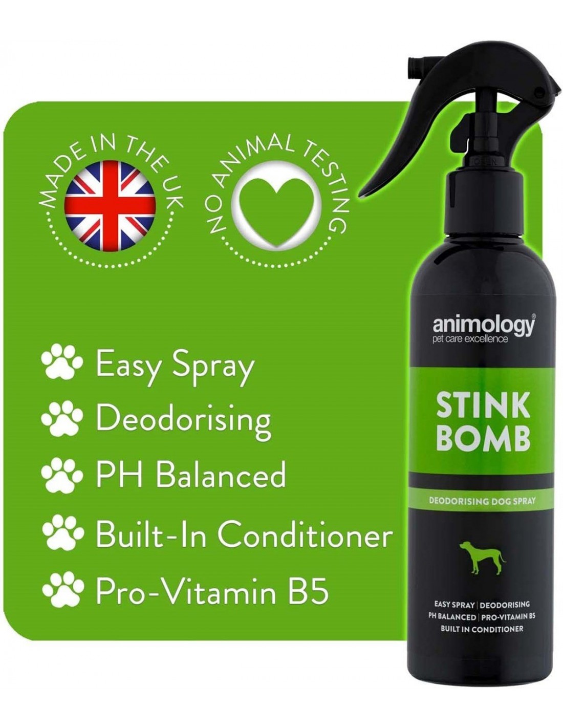 Animology Stink Bomb Kötü Koku Giderici Sprey, köpeğinizin tüylerine hem parlaklık ve canlılık kazandırırken hem de kötü kokulardan arınmasına yardımcı olur. Bu sprey, sağlıklı deri ve tüy oluşumunu destekler ve tazeleyici bir etki sağlar.