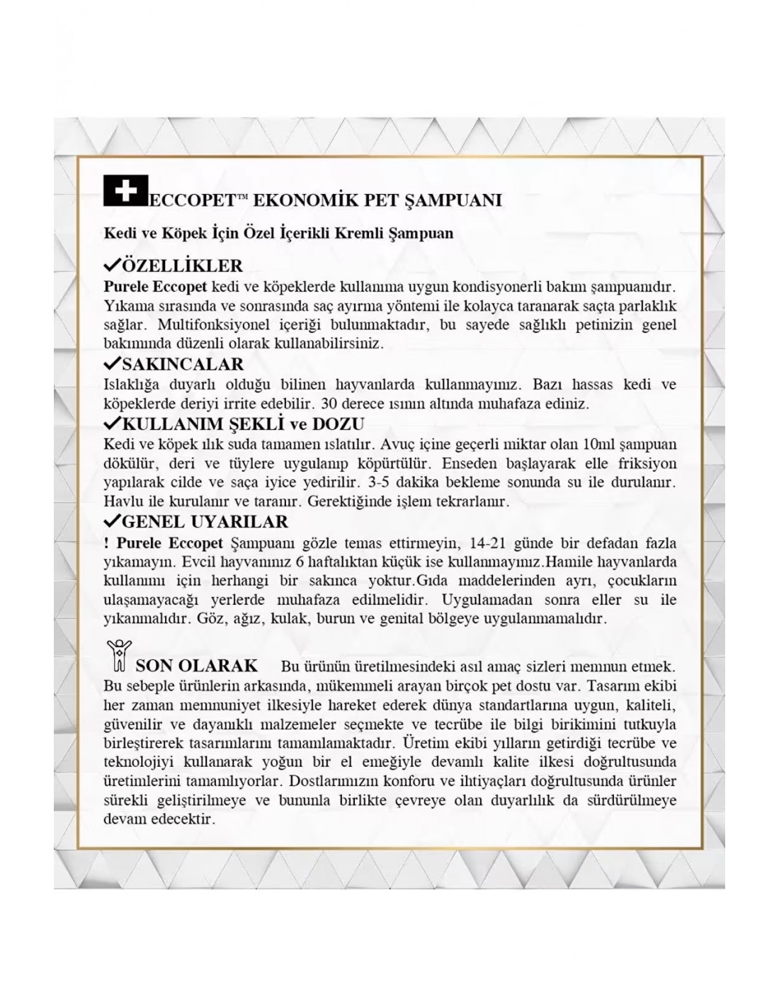 - Fonksiyonlar: Derinlemesine temizlik sağlar, kötü kokuları giderir, tüyleri nemlendirir ve güçlendirir, hassas ciltlere uygundur.