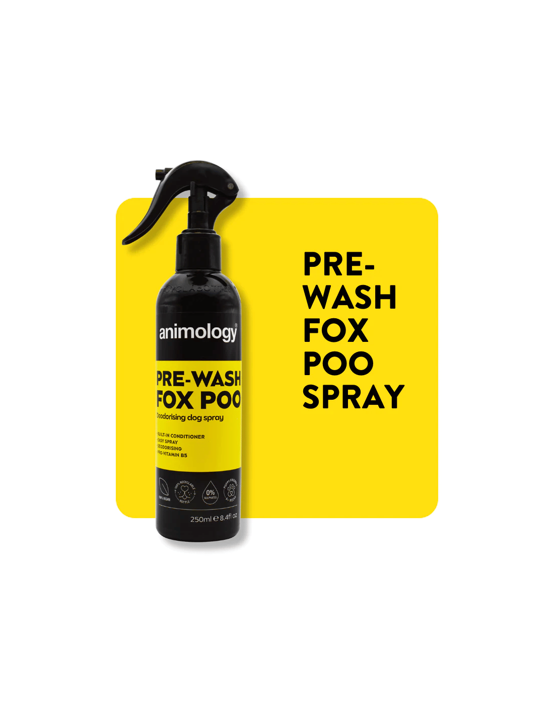 Animology Pre-Wash Fox Poo, köpeklerdeki kötü kokuları ve inatçı kirleri hızlıca temizleyen etkili bir sprey üründür. Özellikle dışkı kokularına karşı güçlü bir çözüm sunar. Animology'nin ödüllü Fox Poo şampuanıyla birlikte kullanıldığında etkisi daha da artar. Bu sprey, yıkama öncesinde kullanılmak üzere tasarlanmış olup, kötü kokuları giderirken yerine hoş bir koku bırakır.