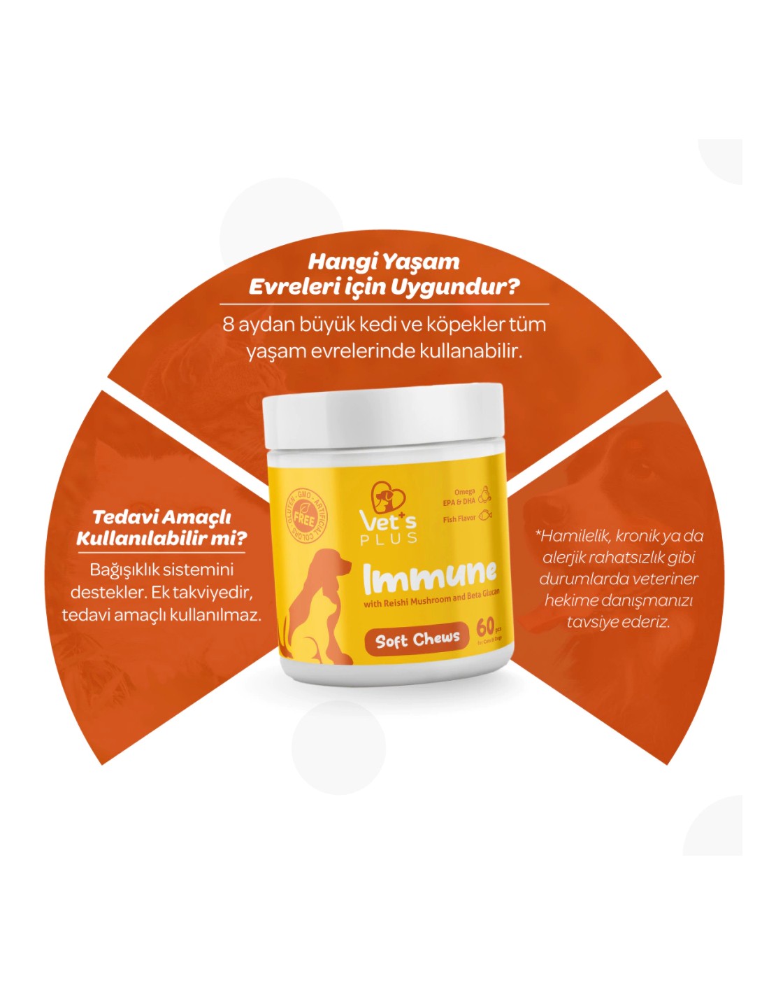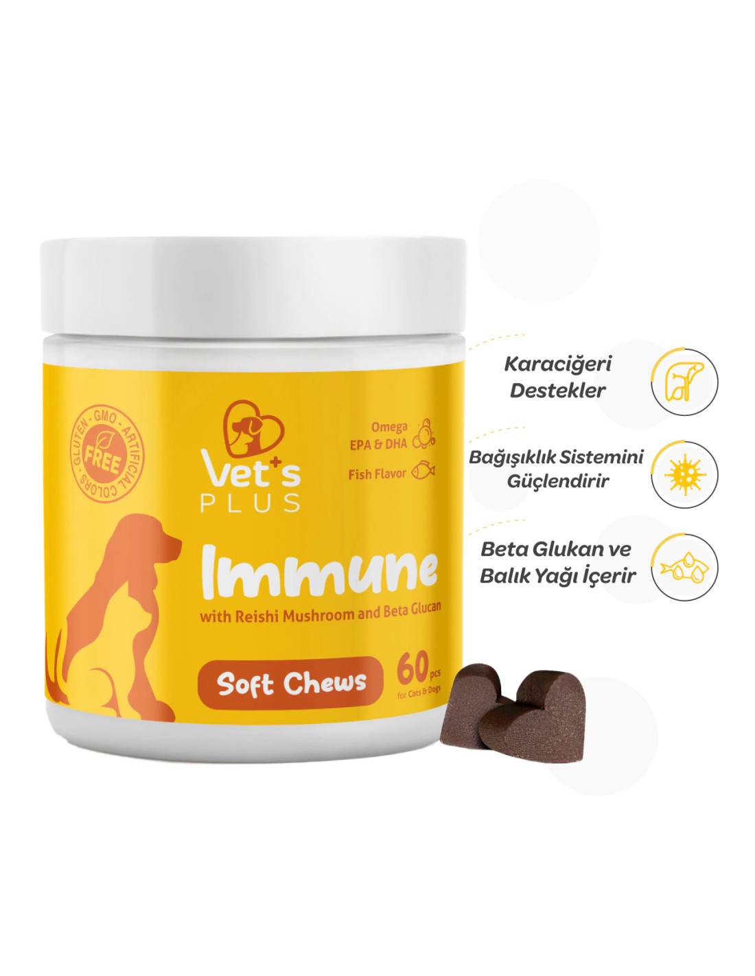 Vet's Plus Immune Kedi ve Köpekler İçin Bağışıklık Sistemi Destekleyici Çiğnenebilir Tablet (60'lı)