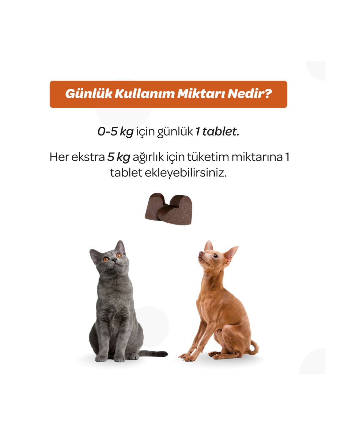 - Kedi ve köpekler için uygun, lezzetli çiğnenebilir tablet formu.