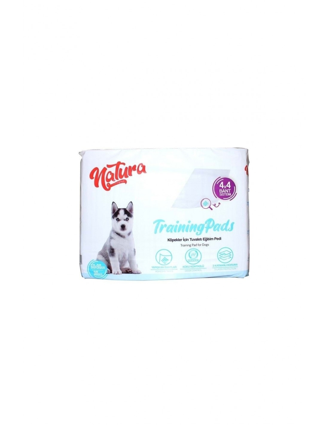 ÜRÜN AÇIKLAMASI Yavru köpekler için tuvalet eğitim pedi. Yapışkan bantları ile zemine sabitlenerek veya köpek tuvaletlerinde kullanılabilir. Koku ve sızıntıyı önlemek için anında emilim sağlar. 4'lü yapışkan bant sistemi sayesinde kayma ve toplanma yapmaz. Ultra ince yapısı rahat ve kolay kullanım sunar. KULLANIM ŞEKLİ Köpeğinizin ev içerisinde tuvaletini yapmasını istediğiniz bölgeye pedi seriniz. Bu bölgenin mama kabından ve yatağından uzakta olmasına özen gösteriniz. Eğitimin daha kolay hale gelmesi için, Natura TrainTrue Spray’i yaklaşık 15 cm uzaklıktan pedin üzerine bir miktar sıkınız ve köpeğinizin koklamasına izin veriniz. Özellikle yemekten, oyundan ve uykudan sonra, köpeğinizi pedin üzerine tekrar getiriniz. Spreyin etkisinin geçtiği durumlarda tekrar sprey sıkınız ve uygulamayı köpeğiniz tuvalet alışkanlığı kazanana kadar tekrarlayınız. Köpeğiniz tuvaletini istediğiniz bölgeye yaptığında mutlaka ödüllendiriniz. Atıklar için lütfen yerel atık mevzuatına uyunuz.